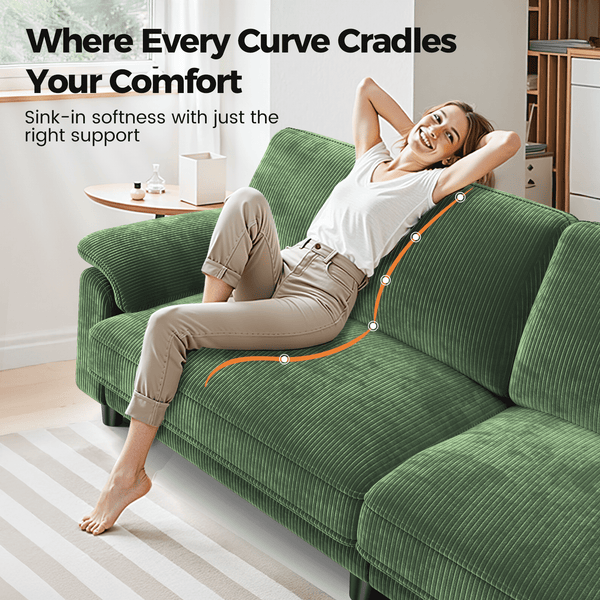 【 Ultimate comfort Experience 】 -- 83-inch super large sofa, ergonomic and aesthetic design perfectly combined. The 7.5-inch high-elasticity sponge cushion paired with the backrest is tailor-made to fit the curvature of your spine. The 22-inch ultra-deep cabin design allows you to fully stretch your legs and enjoy a zero-gravity relaxation experience.