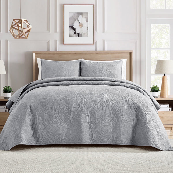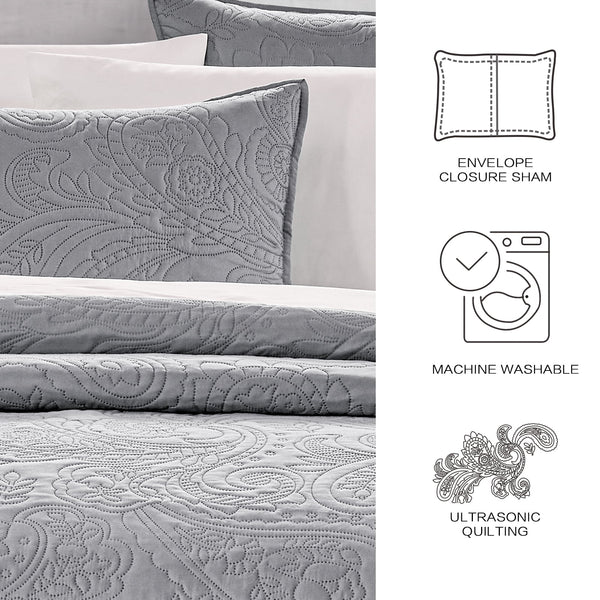 Includes 1 quilt (90" x 92") and 2 matching pillow shams (20" x 26")