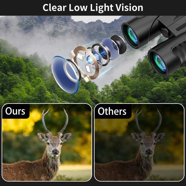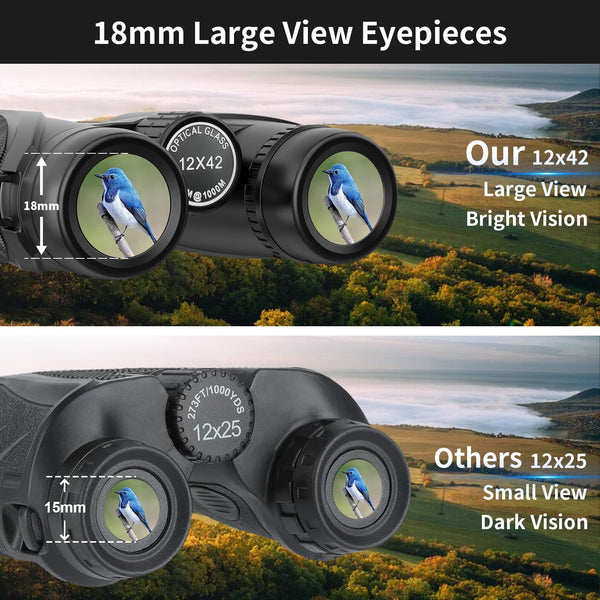 ใ€๐Ÿ๐Ÿx ๐‡๐ข๐ ๐ก-๐๐จ๐ฐ๐ž๐ซ๐ž๐ ๐๐ข๐ง๐จ๐œ๐ฎ๐ฅ๐š๐ซ๐ฌ: ๐ƒ๐ข๐ฌ๐œ๐จ๐ฏ๐ž๐ซ ๐๐š๐ญ๐ฎ๐ซ๐ž'๐ฌ ๐๐ž๐š๐ฎ๐ญ๐ฒใ€‘Elevate your outdoor adventures with these 12x high-powered binoculars. Perfect for binoculars for adults and binoculars for kids, these professional binoculars bring faraway scenes closer with razor-sharp clarity. Whether bird watching, hiking, or exploring, unlock the beauty of nature with visuals that traditional 10x binoculars can't deliver. ใ€๐Ÿ๐Ÿ–๐ฆ๐ฆ ๐‹๐š๐ซ๐ ๐ž ๐„๐ฒ๐ž๐ฉ๐ข๐ž๐œ๐ž: ๐‚๐ฅ๐ž๐š๐ซ๐ž๐ซ & ๐–๐ข๐๐ž๐ซใ€‘Enjoy an exceptionally detailed viewing experience with an 18mm large eyepiece. These binoculars provide a wider field of view, 1.2 times larger than conventional 16mm eyepieces. Ideal for binoculars for bird watching, they ensure every detail is vivid and crystal-clear, even during long-distance observations. ใ€๐‚๐จ๐ฆ๐Ÿ๐จ๐ซ๐ญ๐š๐›๐ฅ๐ž ๐„๐ฒ๐ž๐‚๐ฎ๐ฉ ๐ƒ๐ž๐ฌ๐ข๐ ๐ง ๐Ÿ๐จ๐ซ ๐‹๐จ๐ง๐  ๐”๐ฌ๐žใ€‘Enjoy hours of comfortable viewing with the adjustable eyecups, designed to accommodate users with or without glasses. These binoculars for adults and binoculars for kids feature twist-up eyecups that provide a customized fit, ensuring a comfortable and immersive viewing experience whether bird watching, hunting, or exploring the outdoors. ใ€๐‹๐จ๐ฐ-๐‹๐ข๐ ๐ก๐ญ ๐•๐ข๐ฌ๐ข๐จ๐ง ๐๐ข๐ง๐จ๐œ๐ฎ๐ฅ๐š๐ซ๐ฌ ๐Ÿ๐จ๐ซ ๐‡๐ฎ๐ง๐ญ๐ข๐ง๐ ใ€‘Designed for optimal performance in low-light conditions, the 12x42 binoculars are equipped with 42mm objective lenses, BAK4 prisms, and fully multi-coated optics. Whether you're using them as binoculars for hunting at dawn or bird watching at dusk, enjoy brighter and sharper images in any lighting scenario. ใ€๐ƒ๐ฎ๐ซ๐š๐›๐ฅ๐ž & ๐„๐ซ๐ ๐จ๐ง๐จ๐ฆ๐ข๐œ ๐๐ข๐ง๐จ๐œ๐ฎ๐ฅ๐š๐ซ๐ฌ ๐Ÿ๐จ๐ซ ๐„๐ฏ๐ž๐ซ๐ฒ ๐€๐๐ฏ๐ž๐ง๐ญ๐ฎ๐ซ๐žใ€‘Built to last with rubber armor and non-slip grips, these binoculars for adults and kids are perfect for outdoor adventures. Lightweight yet durable, they're ideal for bird watching, hiking, sports events, and more. The ergonomic design ensures comfortable handling during extended use. BUY WITH CONFIDENCE: 24/7 support ready to ensure your perfect breeze.See More. Explore More. Remember More.Order now and step into a world where every detail matters!
