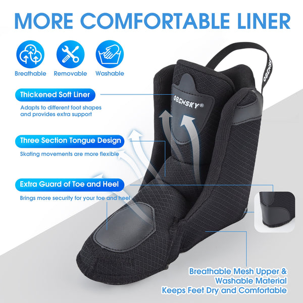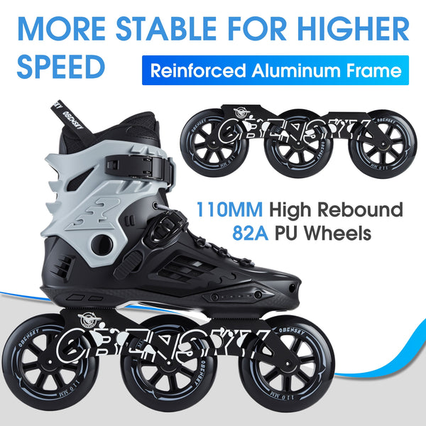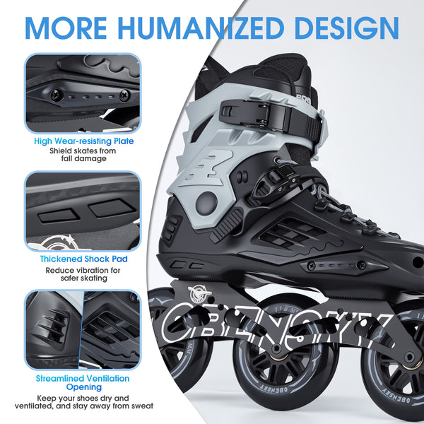 【STABLE ALUMINUM FRAME】 OBENSKY professional inline skates uses reinforced thickened aluminum frame. It is durable, sturdy and lightweight. It is perfect for long - distance outdoor skating as well as suitable for recreational skating and tricks. Bring you an excellent skating experience.